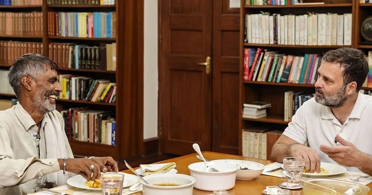 رامیشور کے ساتھ کھانا کھاتے ہوئے راہل گاندھی
