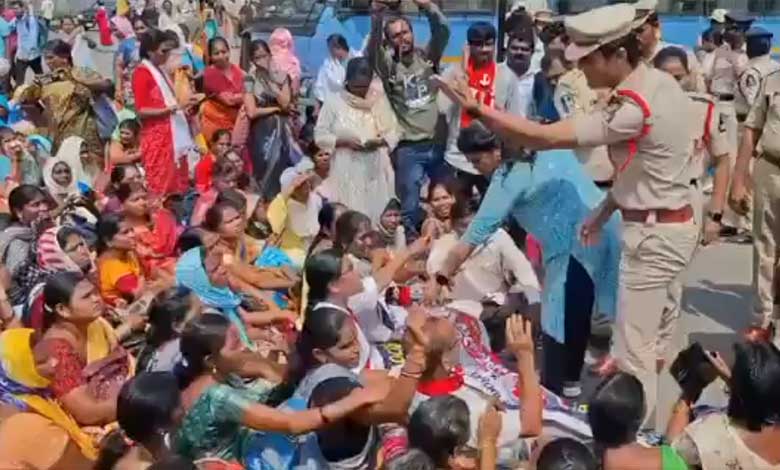 حیدرآباد: شہرحیدرآباد میں آشا ورکرس نے اپنی تنخواہوں میں اضافہ اور ملازمت کی طمانیت کے مطالبہ پر احتجاج کیاجس سے کشیدگی پھیل گئی۔کوٹھی میں کمشنرمحکمہ صحت کے دفتر کا محاصرہ کرنے کی آشاورکرس نے کوشش کی۔