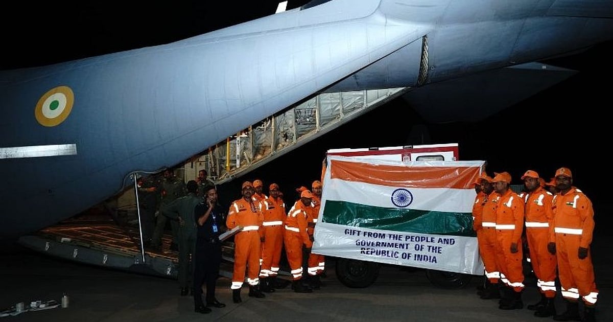 ذرائع کے مطابق ہندوستان ہفتہ کو زلزلہ سے متاثر میانمار کو ایک فوجی طیارے میں تقریباً 15 ٹن راحت اشیاء بھیجی ہے۔ بتایا جاتا ہے کہ ہندوستانی فضائیہ (آئی اے ایف) کا سی-130 جے طیارہ راحتی اشیا لے کر ہنڈن فضائیہ اسٹیشن سے میانمار کے لیے روانہ ہوا۔ ذرائع نے بتایا کہ میانمار کے لیے بھیجی گئی راحتی اشیاء میں ٹینٹ، سلیپنگ بیگ، تیار کھانا، واٹر پیوریفائر، سولر لیمپ، جنریٹر سیٹ اور ضروری دوائیں وغیرہ شامل ہیں۔