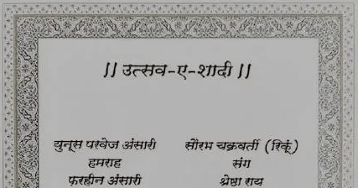 شائع کارڈ میں دی گئی جانکاری کے مطابق عبدالرؤف انصاری کے بیٹے یونس پرویز کی شادی 17 اپریل کو ہونے والی ہے، جبکہ وشوجیت چکرورتی کے بیٹے سوربھ کی شادی 18 اپریل کو ہوگی۔ دونوں کنبوں نے ولیمہ چندرلسیل روڈ کالا تالاب میں ایک پرائیویٹ ریسورٹ میں 19 اپریل کو رکھی ہے۔ اس تقریب کو ’دعوتِ خوشی‘ نام دیا گیا ہے۔ کارڈ میں عبدالرؤف انصاری کے بیٹے یونس پرویز انصاری کی شادی فرحین انصاری کے ساتھ ہونے والی ہے۔ بارات بورکھیڑا کے ایک ریسورٹ میں جائے گی، جہاں عشا کی نماز کے بعد نکاح ہوگا۔ سوربھ کی شادی شریشٹھا رائے کے ساتھ ہونے والی ہے۔ 18 اپریل کو بارات بوقت شام روانہ ہوگی اور اسٹیشن کے ایک میرج گارڈن میں جائے گی۔ یہاں دیر شب ان کے پھیرے ہوں گے۔ یونس پرویز اور سوربھ چکرورتی کی شادی کا جو کارڈ شائع ہوا ہے، اس میں قابل دید بات یہ ہے کہ اردو اور ہندی زبان کا استعمال انتہائی خوبصورتی سے کیا گیا ہے۔ مثلاً کارڈ پر سب سے اوپر لکھا گیا ہے ’اُتسوِ شادی‘۔