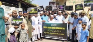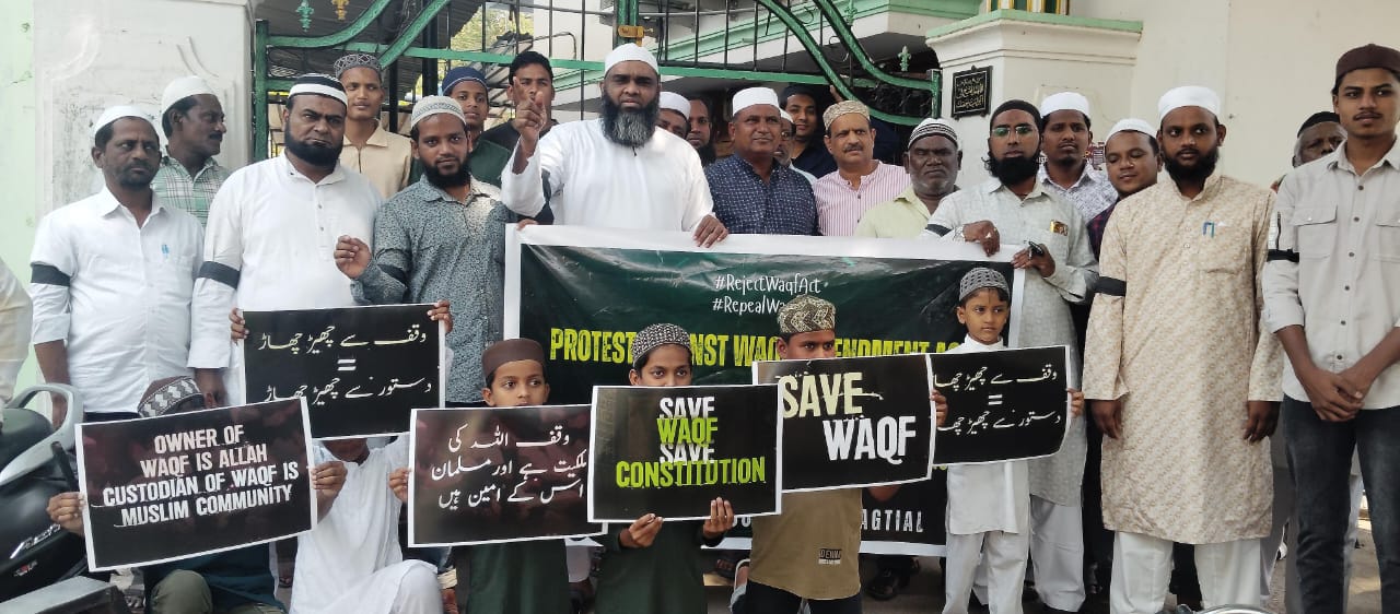 جگتیال / 12 اپریل: آل انڈیا مسلم پرسنل لا بورڈ کی جوائنٹ ایکشن کمیٹی جگتیال کی جانب سے وقف ترمیمی قانون کے خلاف ایک پُرامن احتجاج کا انعقاد بعد نماز جمعہ جگتیال شہر کی مختلف مساجد میں کیا گیا۔ اس احتجاج میں مقامی مسلمانوں، نوجوانوں، معززینِ محلہ اور مسجد کے مصلیوں نے بڑی تعداد میں شرکت کی۔