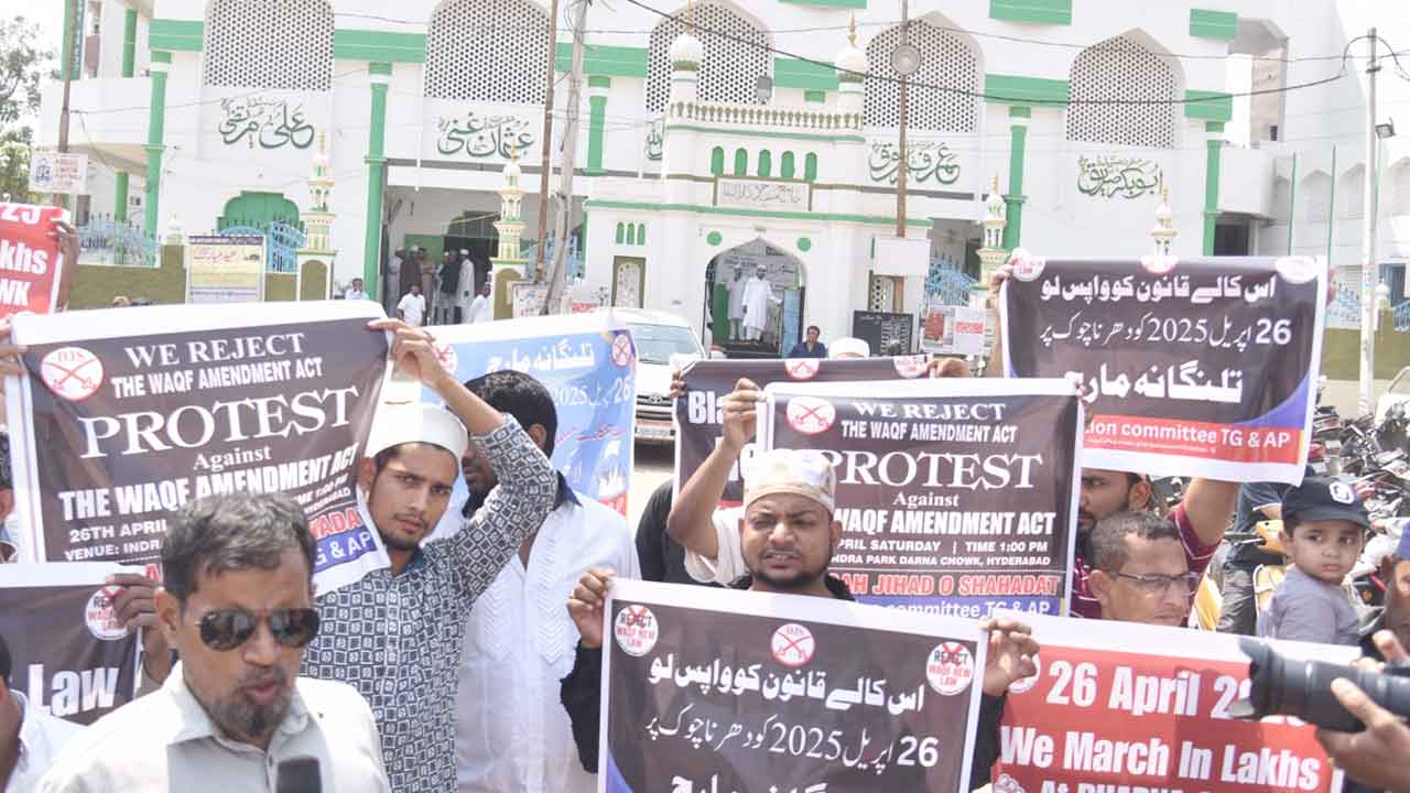 حیدرآباد: مرکزی حکومت کی جانب سے پیش کیے گئے مجوزہ وقف ترمیمی بل 2025 کے خلاف آج پرانے شہر حیدرآباد کے دارالشُفا گراؤنڈز میں جمعہ کی نماز کے بعد ایک بڑا اور پرامن احتجاجی مظاہرہ منعقد ہوا۔ یہ احتجاج مشترکہ ایکشن کمیٹی (JAC) کے بینر تلے کیا گیا جس میں مختلف مسالک، دینی طبقات اور عوام کی بڑی تعداد نے شرکت کی۔