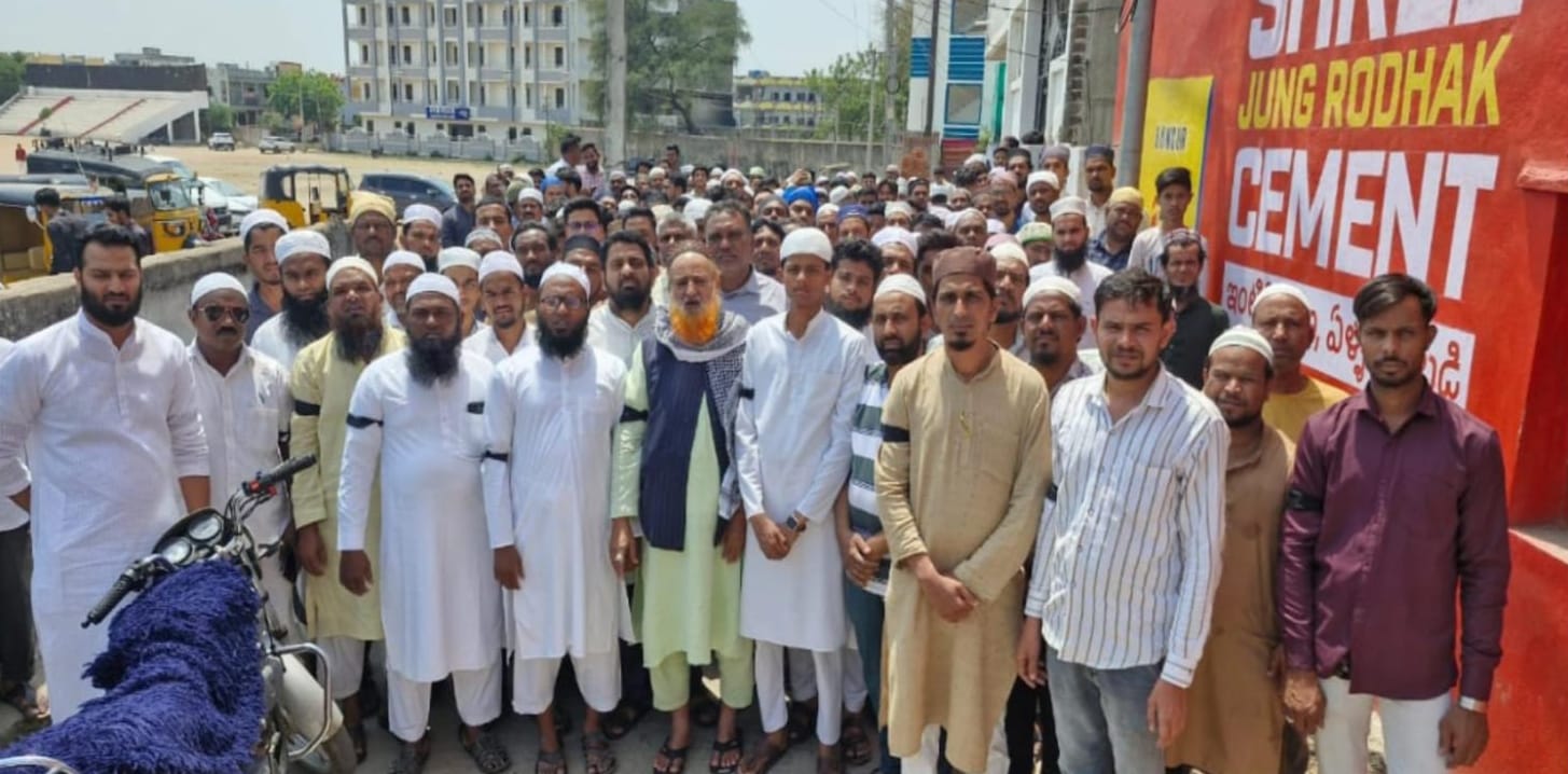 نرمل،10/اپریل(ایم۔اے۔وحید)شہر نرمل میں آل انڈیا مسلم پرسنل لاء بورڈ کی ہدایت پر 56 مساجد میں بعد نماز جمعہ نو منظور شدہ وقف ترمیمی قانون 2025 کے خلاف مسلمانوں نے اپنے بازؤں پر سیاہ پٹیاں باندھ کر شدید احتجاج کیا۔