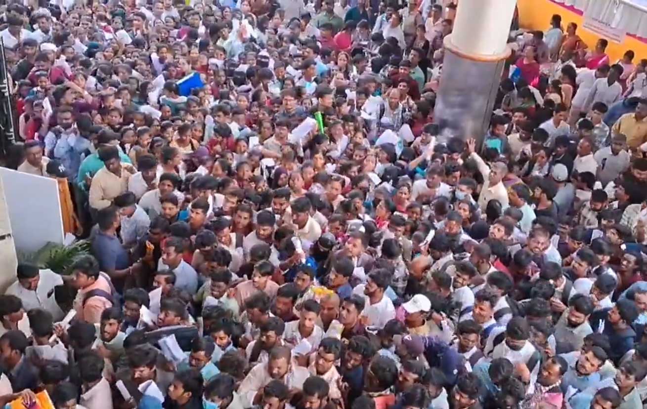 ایسا ہی ایک واقعہ آج ورنگل شہر میں دیکھنے کو ملا، جہاں ایم کے نائیڈو کنونشن ہال میں منعقدہ میگا جاب میلہ میں ہزاروں بے روزگار نوجوان شرکت کے لیے پہنچے۔ لوگوں کی تعداد غیر متوقع طور پر زیادہ ہونے کی وجہ سے کنونشن ہال کے مین گیٹ پر شدید بھگدڑ مچ گئی۔ اس ہجوم کے دباؤ سے ہال کے شیشے ٹوٹ گئے اور تین خواتین زخمی ہو گئیں۔