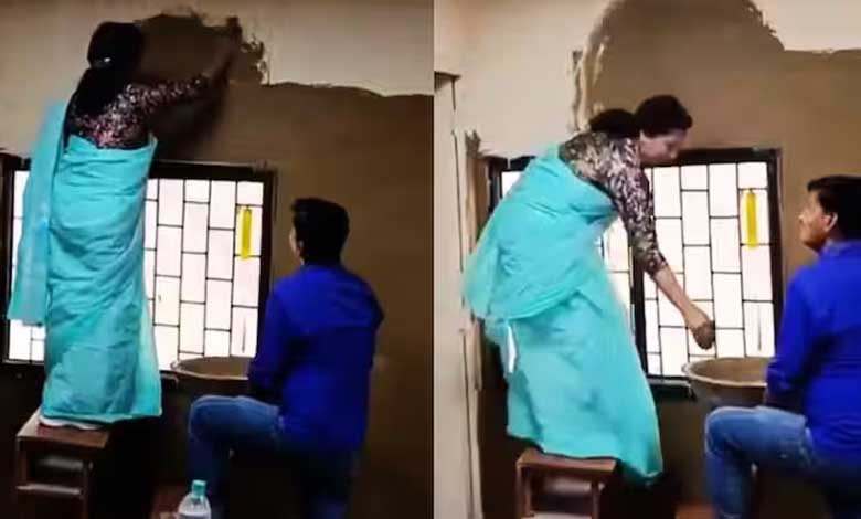 Gober used for cooling rooms Delhi University: دہلی: دہلی یونیورسٹی کے تحت اشوک وہار میں واقع لکشمی بائی کالج کی پرنسپل ڈاکٹر پرتیوشا وتسلا کی ایک ویڈیو سوشل میڈیا پر تیزی سے وائرل ہو رہی ہے، جس میں وہ کالج کی کلاس رومز کی دیواروں پر گوبر کا لیپ کرتی ہوئی نظر آ رہی ہیں۔