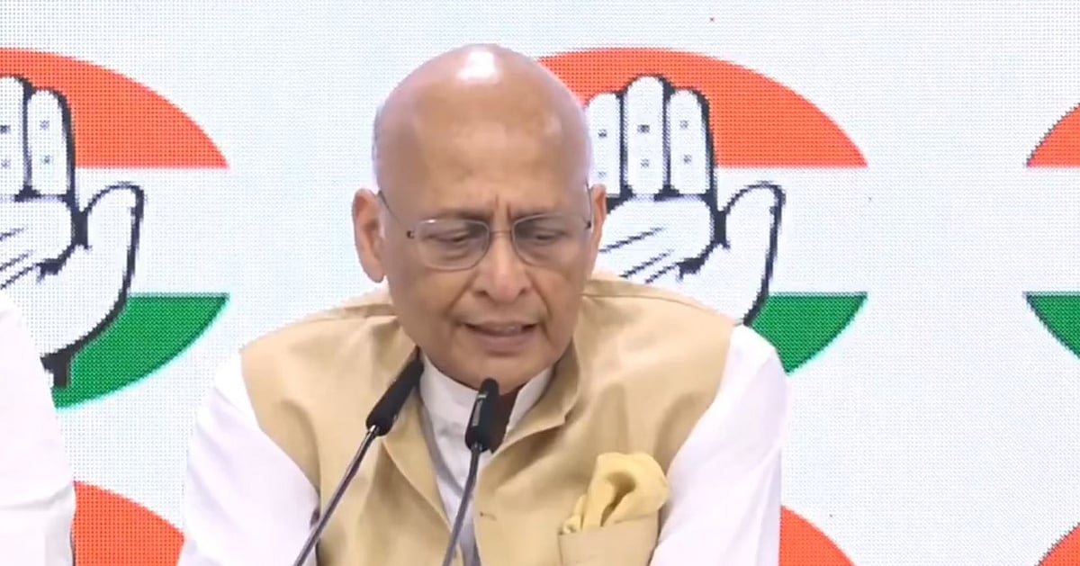 نامہ نگاروں سے بات کرتے ہوئےکانگریس ترجمان اور سینئر وکیل ابھیشیک سنگھوی