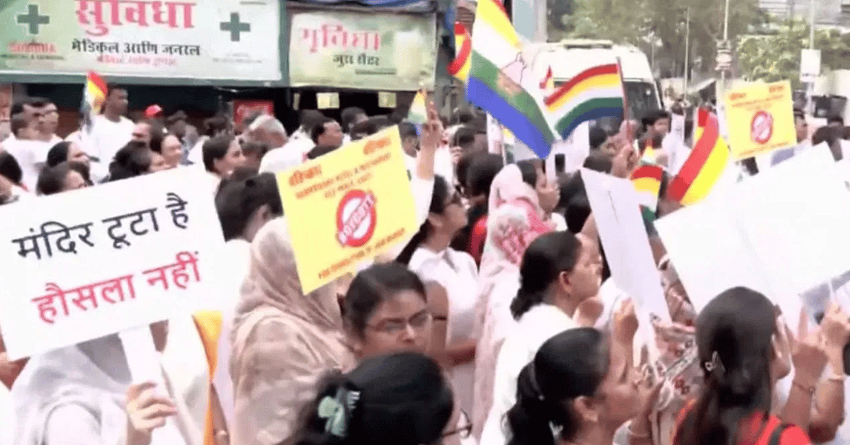ممبئی کے وِلے پارلے علاقے میں 90 سال پرانے پارشوناتھ دگمبر جین مندر کے انہدام پر پورے ملک کی جین برادری میں شدید ناراضگی ہے۔ ہفتہ (19 اپریل) کو ممبئی میونسپل کارپوریشن کی کارروائی کے خلاف جین برادری کے لوگوں نے بڑی تعداد میں ایک پُرامن ریلی نکالی۔ ریلی سے قبل جین برادری کے افراد نے منہدم مندر میں آرتی کی۔ ریلی میں شامل افراد نے ہاتھوں میں پلے کارڈز اٹھا رکھے تھے، جن پر لکھا تھا ’مندر ٹوٹا ہے، حوصلہ نہیں‘۔ جین برادری کے لوگ مندر کی از سر نو تعمیر کا بھی مطالبہ کر رہے ہیں۔ جین برداری کے اس احتجاج کو کانگریس پارٹی کا بھی ساتھ مل گیا ہے۔