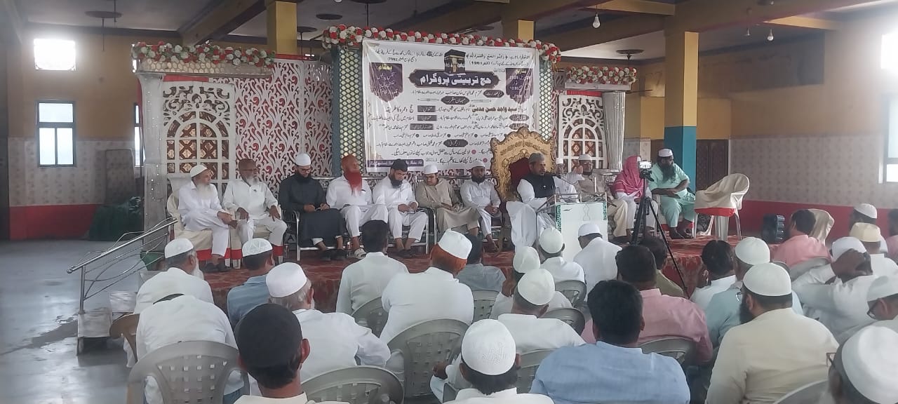 نظام آباد (راست)۔ آج بتاریخ ۲۰/اپریل ۲۰۲۵ کو شہری جمعیت اہل حدیث نظام آباد کی جانب سے زیر صدارت محترم الیاس خان صاحب شہری امیر جماعت و ناظم شہری جمعیت جناب محمد شکیل صاحب کی زیر نگرانی کنگس پیالیس قلعہ روڈ نظام آباد میں حج تربیتی کیمپ کا انعقاد عمل میں لایا گیا۔