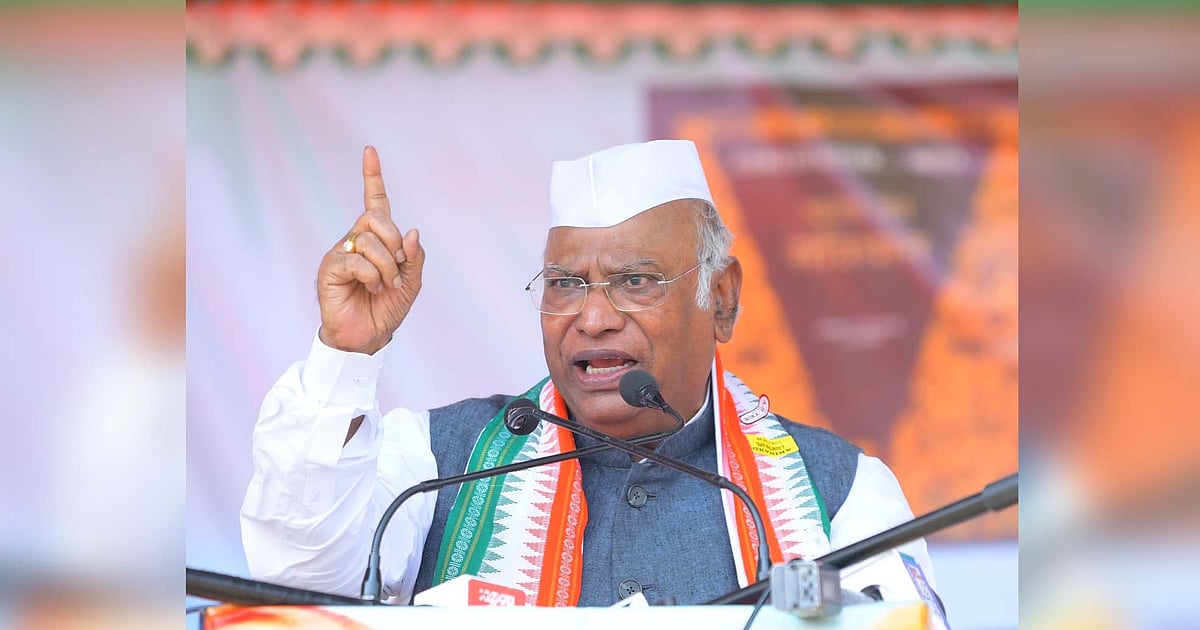 بہار کے بکسر میں ’جے باپو، جے بھیم، جے سمویدھان‘ ریلی سے خطاب کرتے کانگریس صدر ملکارجن کھڑگے / تصویر بشکریہ ایکس