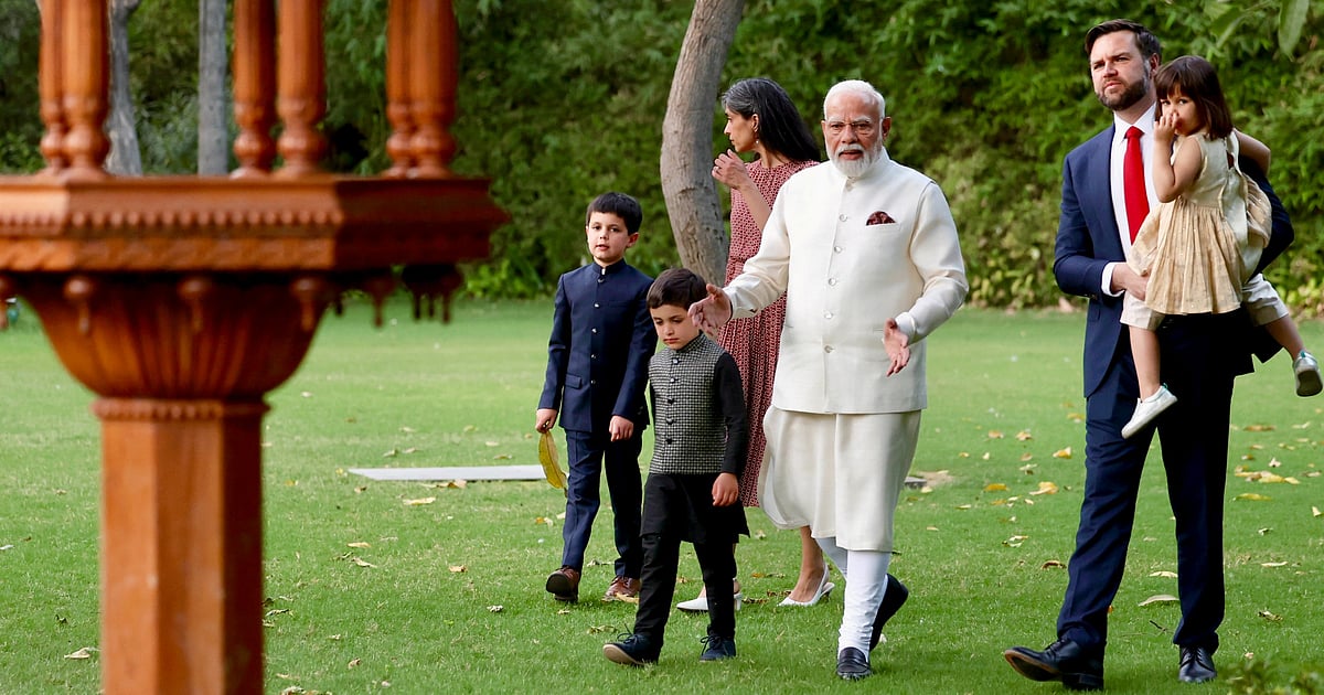 وزیر اعظم نریندر مودی نے پیر کو امریکی نائب صدر جے ڈی وینس، ان کی اہلیہ مسز اوشا وینس، ان کے بچوں اور امریکی انتظامیہ کے سینئر ارکان سے ملاقات کی۔7، لوک کلیان مارگ پر وزیر اعظم کی رہائش گاہ پر منعقدہ میٹنگ کے دوران وزیر اعظم نے فروری میں اپنے واشنگٹن کے دورے اور صدر ٹرمپ کے ساتھ اپنی مفید بات چیت کو یاد کیا، جس نے ‘میک امریکہ گریٹ اگین’ (ایم اے جی اے) اور ‘ترقی یافتہ ہندوستان 2047’ کی طاقت کا فائدہ اٹھاتے ہوئے، ہندوستان اور امریکہ کے درمیان قریبی تعاون کے لیے ایک روڈ میپ تیار کیا۔