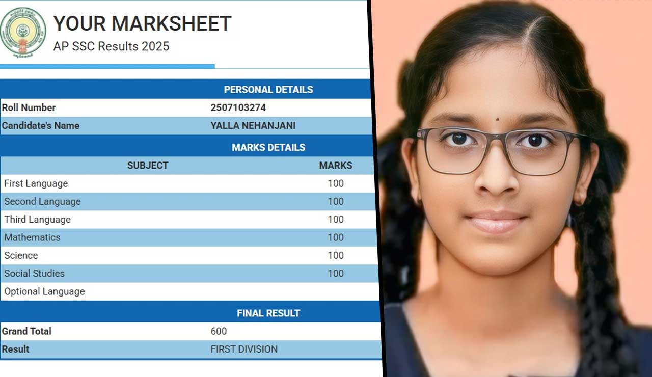 آندھرا پردیش SSC نتائج: کاکینادا کی نہانجنی نے پہلی بار 600 میں سے 600 نمبر حاصل کیے