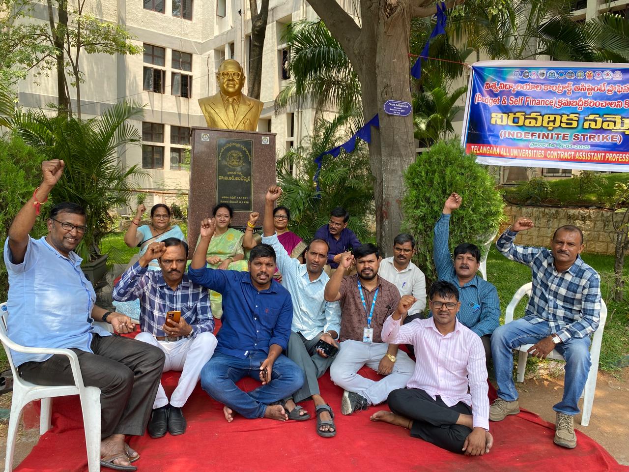 اسی سلسلہ کے تحت ڈاکٹر بی آر امبیڈکر اوپن یونیورسٹی کے کنٹراکٹ اسسٹنٹ پروفیسر بھی ہڑتال کررہے ہیں اور ان کا دیرینہ مطالبہ ہے کہ حکومت تلنگانہ ان کی خدمات کو دیکھتے ہوئے ساتویں پی آر سی کے تحت Basic Pay، DA، HRA اور سالانہ تین فیصد تنخواہ میں اضافہ کیساتھ ان کی خدمات کو باقاعدہ بنائیں، ڈاکٹر بی آر امبیڈکر اوپن یونیورسٹی میں واقع مجسمہ امبیڈکر کے روبرو اسسٹنٹ پروفیسرس گذشتہ تین دن سے