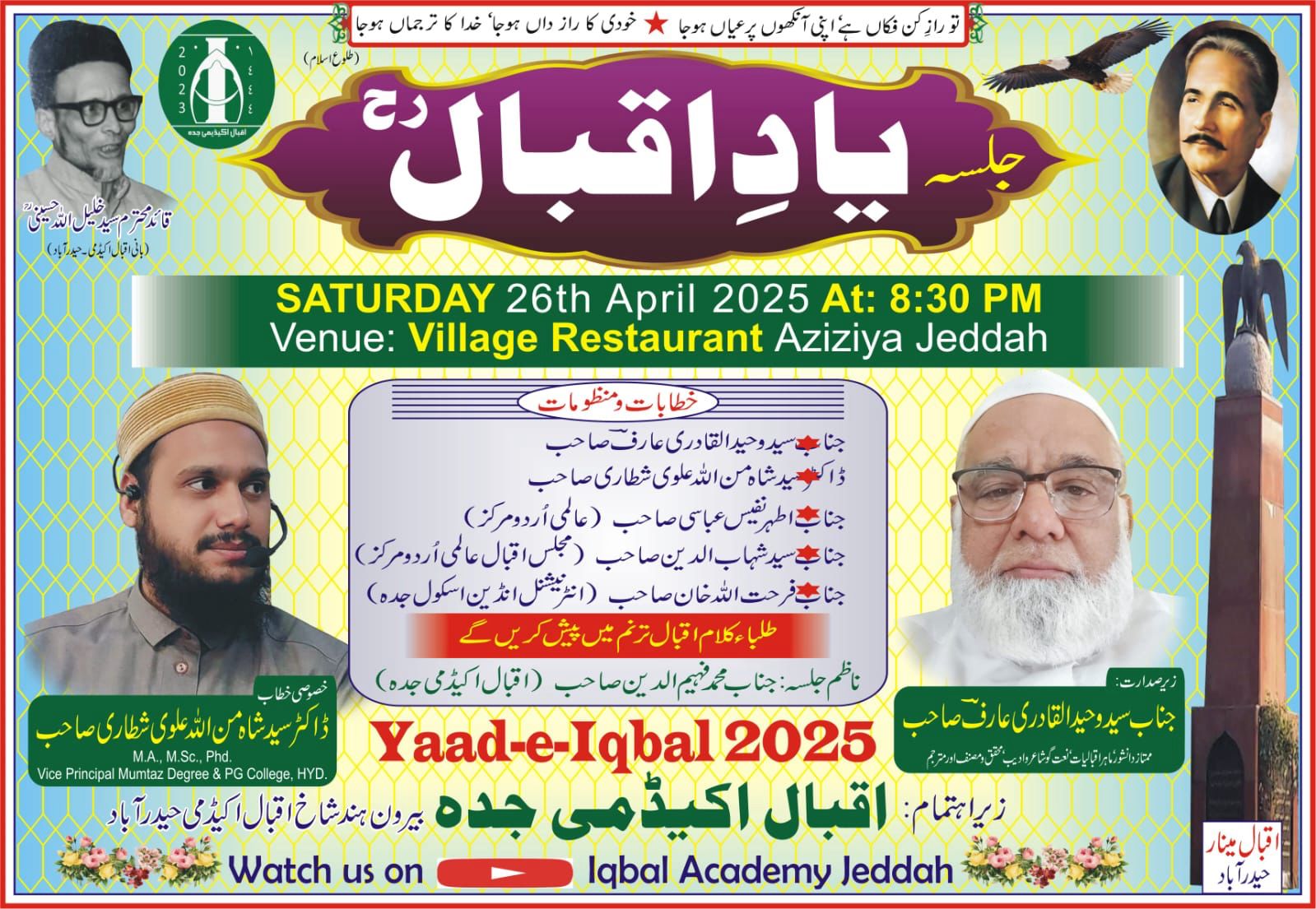 “جلسہ بیاد اقبال” زیر اہتمام اقبال اکیڈمی جدہ۔ 26 اپریل 2025