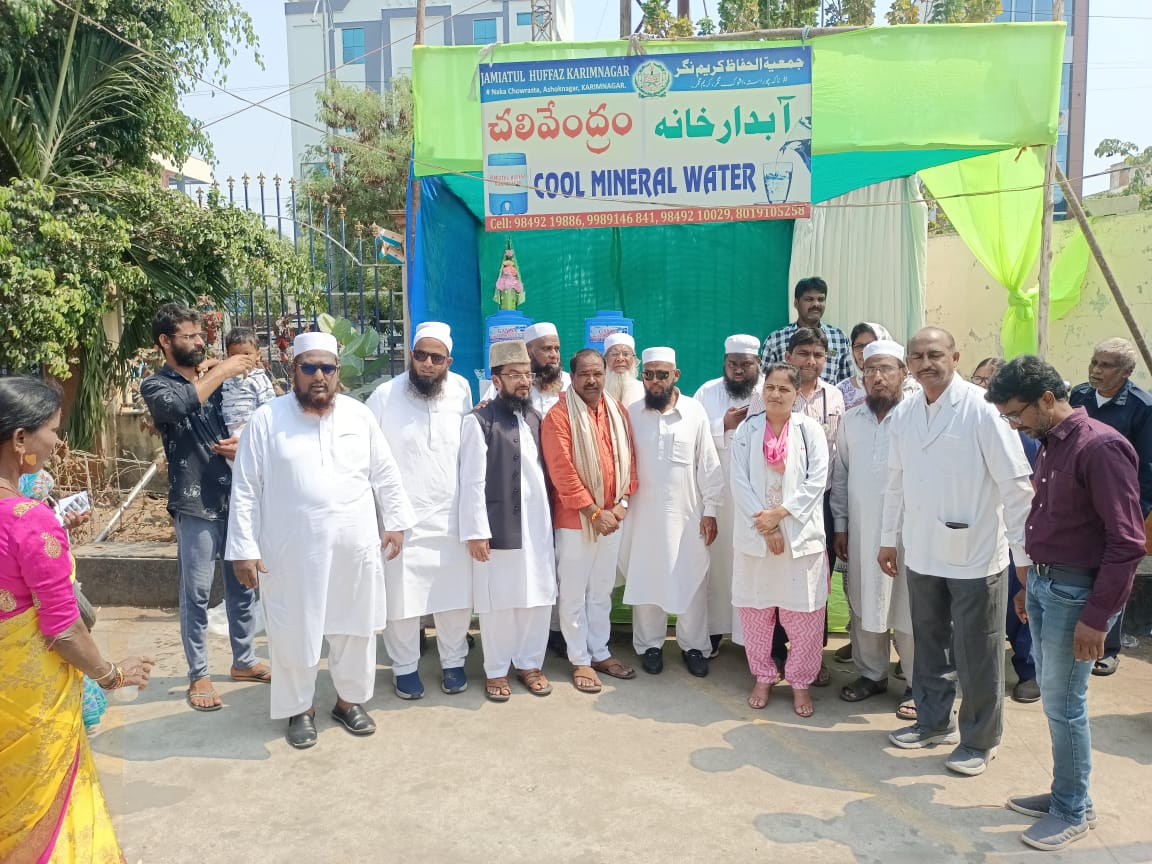 موسم گرما میں ہر سال کی طرح اس سال بھی جمعیۃ الحفاظ کریم نگر کی جانب سے شہر کریم نگر میں دو مقامات (رعیتو بازار کشمیر گڈہ اور ماتا ششو ہاسپٹل) میں آبدار خانوں کا افتتاح عمل میں آیا،رعیتو بازار کشمیر گڈہ کے آبدار خانہ کا افتتاح عاطف آتینہ صاحب کارپوریٹر کشمیر گڈہ نے کیا