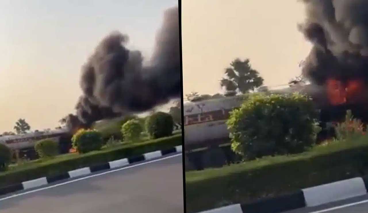 صورتحال کی نزاکت کو محسوس کرتے ہوئے ڈرائیور اور کلینر فوری طور پر گاڑی سے چھلانگ لگا کر باہر نکل گئے۔ اس واقعہ میں گاڑی کا اگلا حصہ مکمل طور پر جل کر خاکستر ہو گیا۔