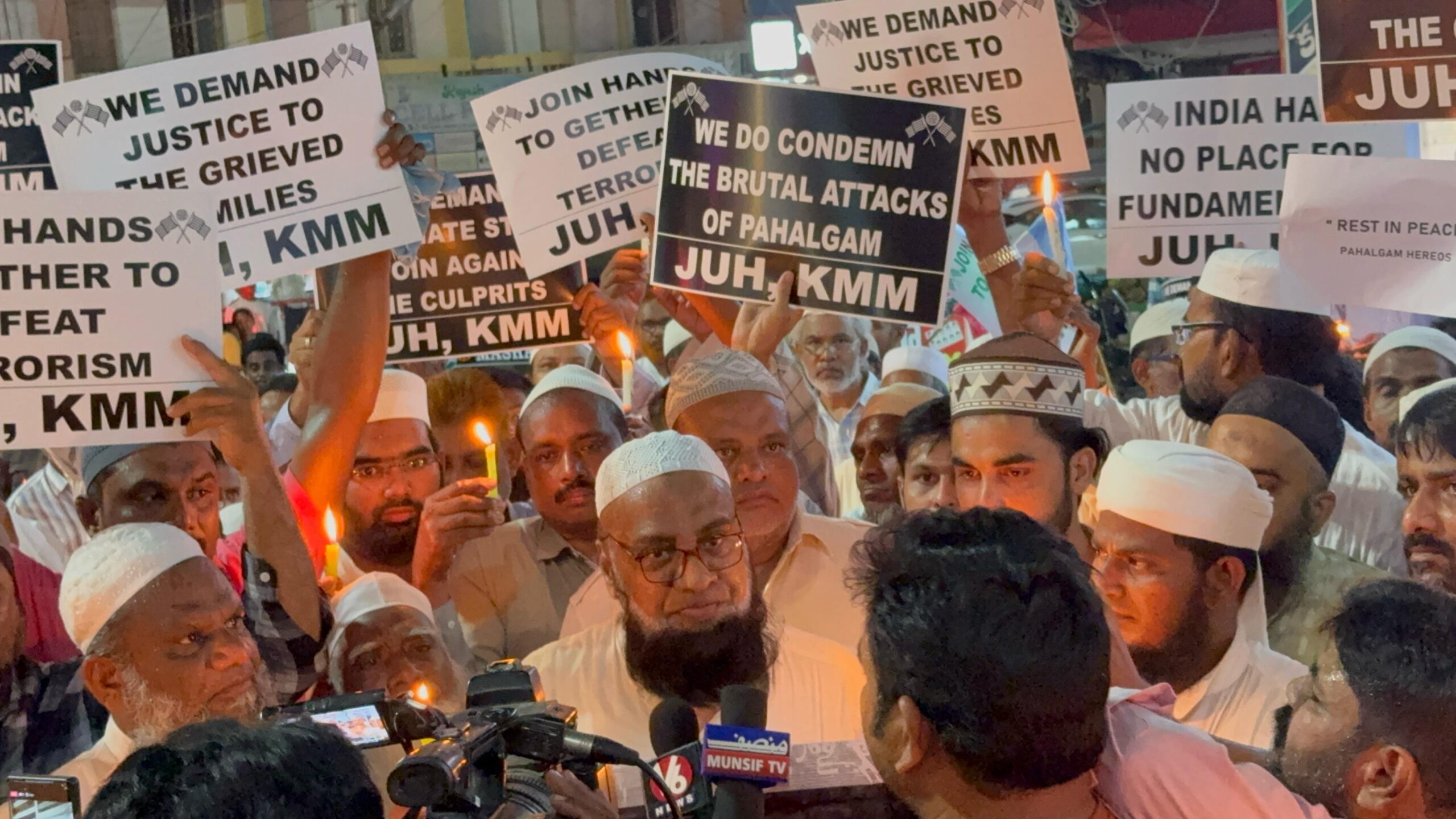.کھمم: کشمیر کے پہلگام میں بھارتی سیاحوں پر دہشت گرد حملے کے خلاف جمعیت العلماء ضلع کھمم کی جانب سے ایک موم بتی ریالی نکالی گئی۔ اس ریالی میں شہر کے علماء، حفاظ، ائمہ مساجد، دانشوران اور عوام کی کثیر تعداد نے شرکت کی۔