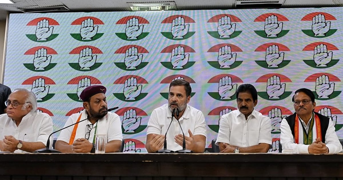 پریس کانفرنس سے خطاب کرتے ہوئے راہل گاندھی، تصویر ویپن/قومی آواز