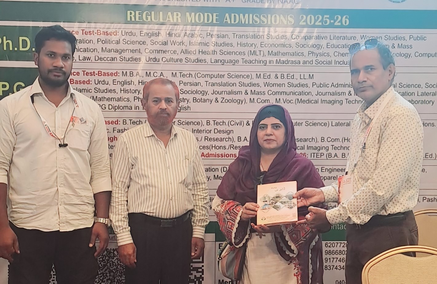 عوام بالخصوص مرد و خواتین اور طلباء وطالبات کی رہنمائی کی گئی صدر مانو المونی اسوسی ایشن جناب اعجاز علی قریشی ایڈوکیٹ نے بتایاکہ مولاناآزاد نیشنل اردو یونیورسٹی میں 120 سے زائد تعلیمی کورسیس ہیں جن میں ڈپلوما سے لے کر پی ایچ ڈی تک کے کورسیس ہیں جن میں پی ایچ ڈی کے 31 پروگرامس ہیں