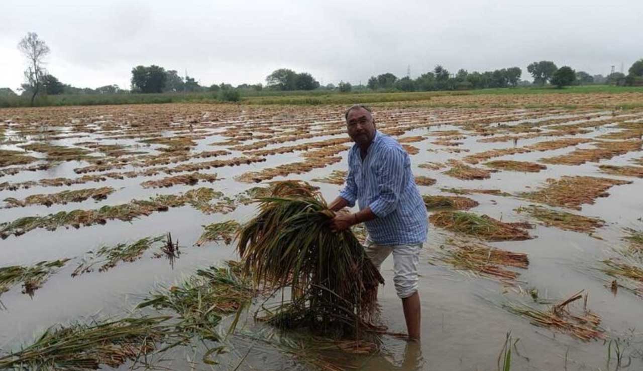 ۔ کھیتوں میں دھان سوکھنے کے لئے پھیلایا گیا تھا لیکن اچانک ہوئی موسلا دھار بارش سے وہ بھیگ گیا جس سے اناج خراب ہونے لگا ہے۔