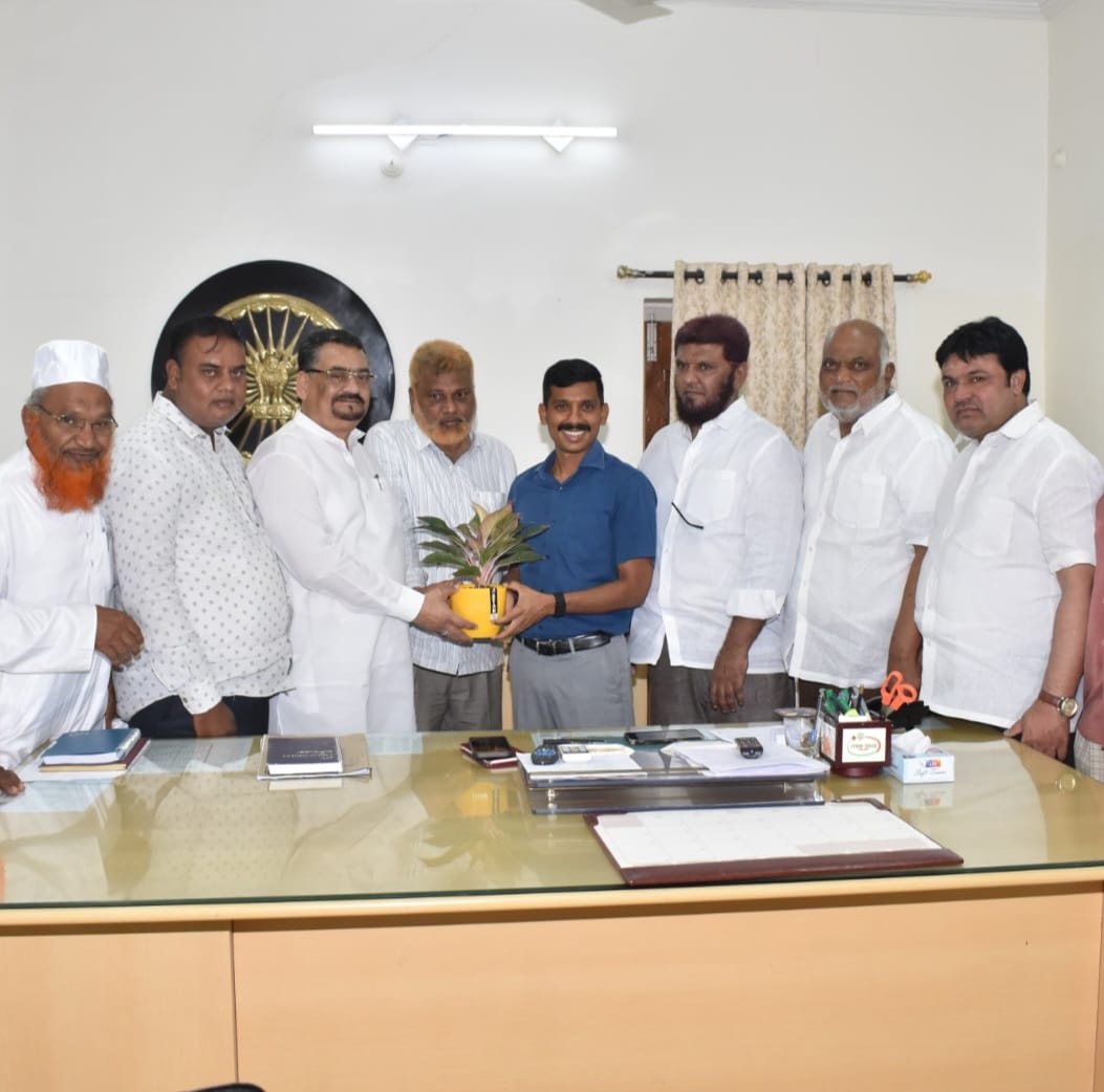 نظام آباد 13/مئی (اردو لیکس) تلنگانہ حکومتی مشیر خاص برائے ایس سی. ایس ٹی و بی سی میناریٹی ویلفیئر محمد علی شبیر کی ہدایت پر شہر کے سینئر کانگریس پارٹی اقلیتی قائدین کا ایک نمائندہ وفد سابقہ ڈپٹی میئر ایم اے فہیم. ڈائریکٹر تلنگانہ پولیوشن کنٹرول بورڈ و سابقہ کارپوریٹر ہارون خان. سینئر کارپوریٹر ایم اے قدوس. سابقہ کواپشن ممبر کانگریس اشفاق احمد خان. مولانا کریم الدین کمال. سابقہ سینئر کارپوریٹرس کانگریس محمد مجاہد خان و محمد مصباح الدین نے نظام آباد پولیس کمشنر سری سائی چیتنیا سے ملاقات کی
