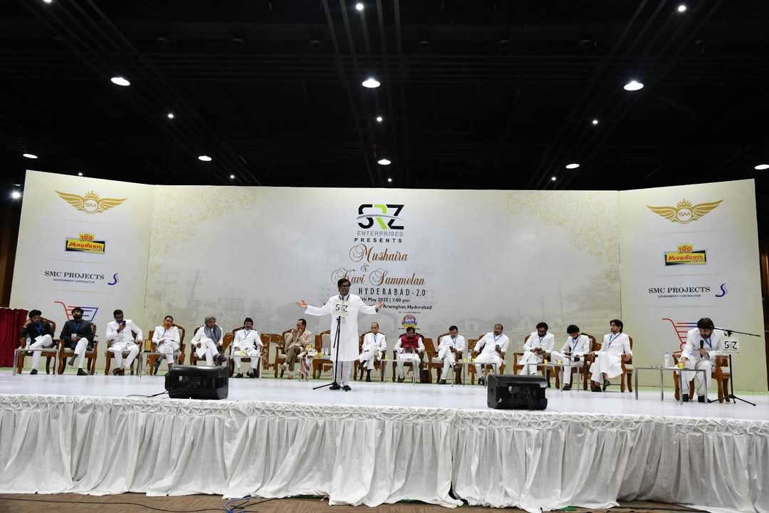 تاریخی شہرحیدرآباد میں ایس آر زیڈانٹرپرائزس کے زیراہتمام تاریخی وکامیاب مشاعرہ وکوی سمیلن2.0 کاانعقاد میٹروکنونشن، آرام گھرمیں عمل میں آیا۔اس موقع پر اسٹیج پرحیدرآبادی تہذیب کا رنگ د یکھنے کوملا جہاں تمام شعراء دکن کے روایتی لباس شیروانی میں نظرآئے جس کااہتمام ایس آر زیڈانٹرپرائزس کے ذ ریعہ کیاگیاتھا۔