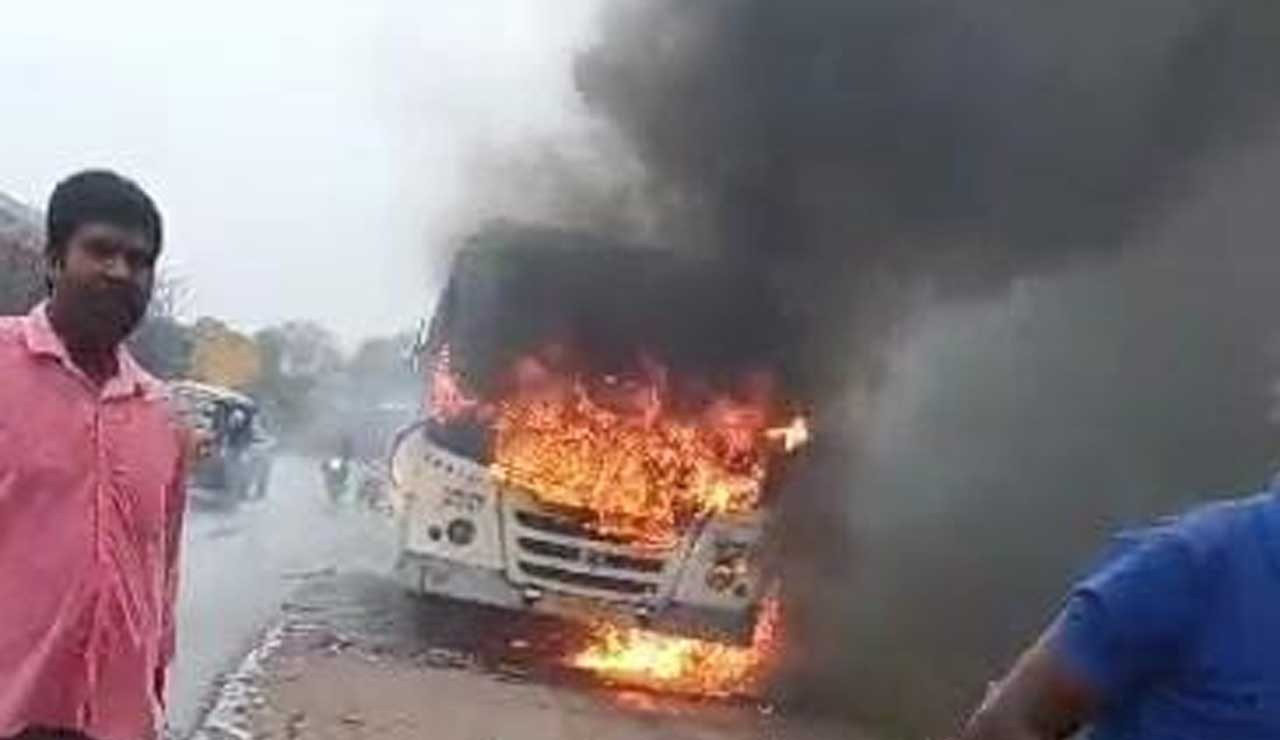 حیدرآباد: تلنگانہ کے میڑچل پولیس اسٹیشن کے حدود میں واقع آئی ٹی آئی کے قریب ایک پرائیویٹ بس میں اچانک آگ بھڑک اٹھی۔
