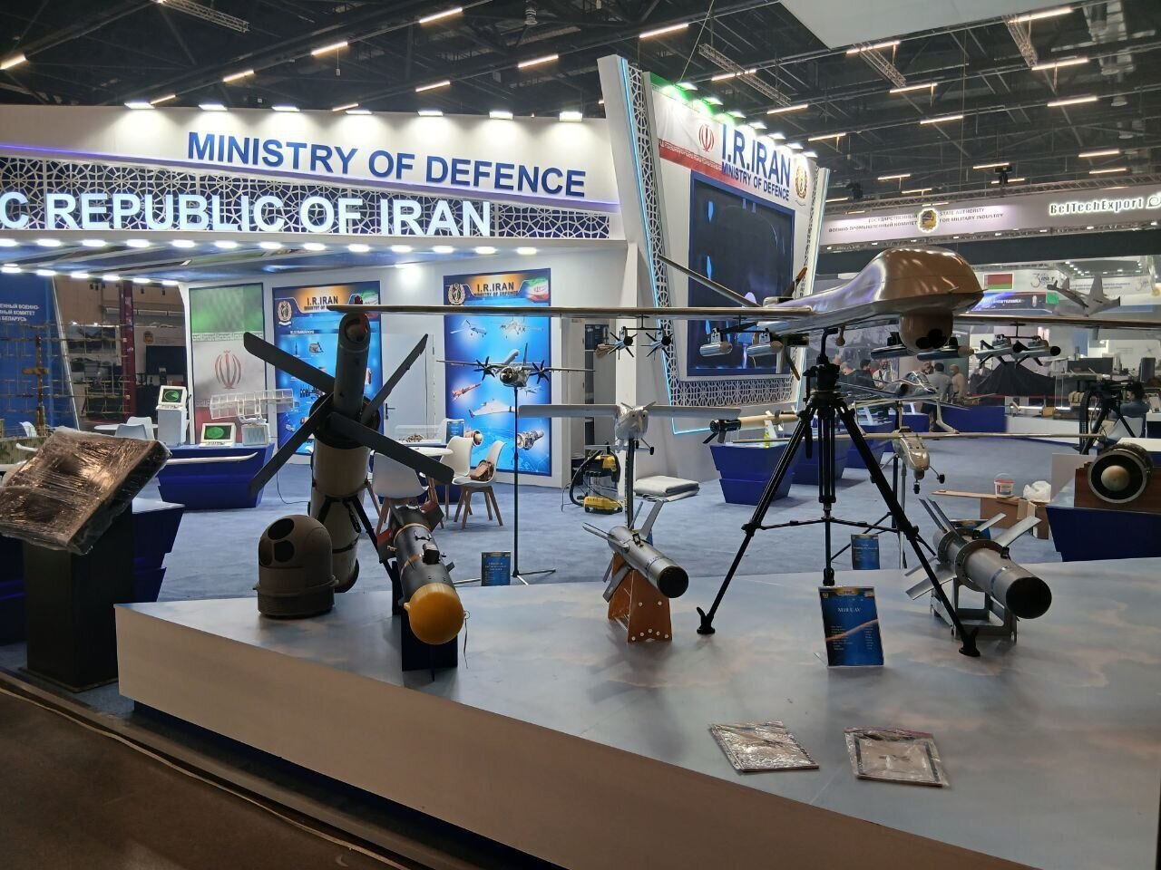 مہر خبررساں ایجنسی کی رپورٹ کے مطابق، ایران کی وزارت دفاع و لاجسٹک برائے مسلح افواج نے بیلاروس کے دارالحکومت مینسک میں منعقدہ بین الاقوامی نمائش میں اپنے 50 سے زائد جدید دفاعی منصوبے اور مصنوعات کی نمائش کی ہے۔