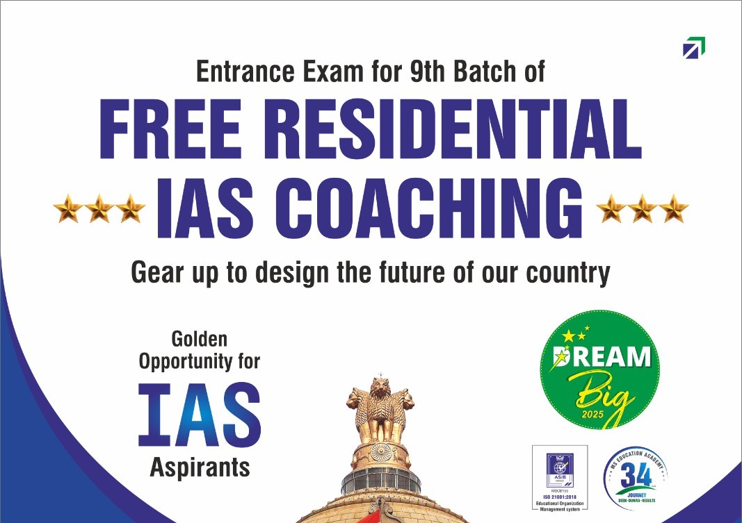 حیدرآباد/ ایم ایس آئی اے ایس اکیڈیمی نے UPSC CSE 2025-26 کی تیاری کرنے والے امیدواروں کے لیے اپنی نویں بیچ کے آغاز کا باضابطہ اعلان کیا ہے۔ اس بیچ میں داخلے کے لیے اسکریننگ ٹیسٹ 22 جون 2025 کو منعقد کیا جائے گا، جبکہ درخواست جمع کروانے کی آخری تاریخ 18 جون 2025 مقرر کی گئی ہے۔