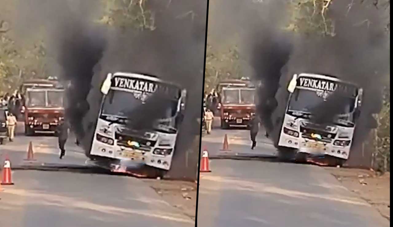 حیدرآباد: کالیشورم پشکرالوسے واپسی کے دوران شارٹ سرکٹ کے نتیجہ میں بس کوآگ لگ گئی تاہم اس واقعہ میں تمام یاتری محفوظ رہے۔