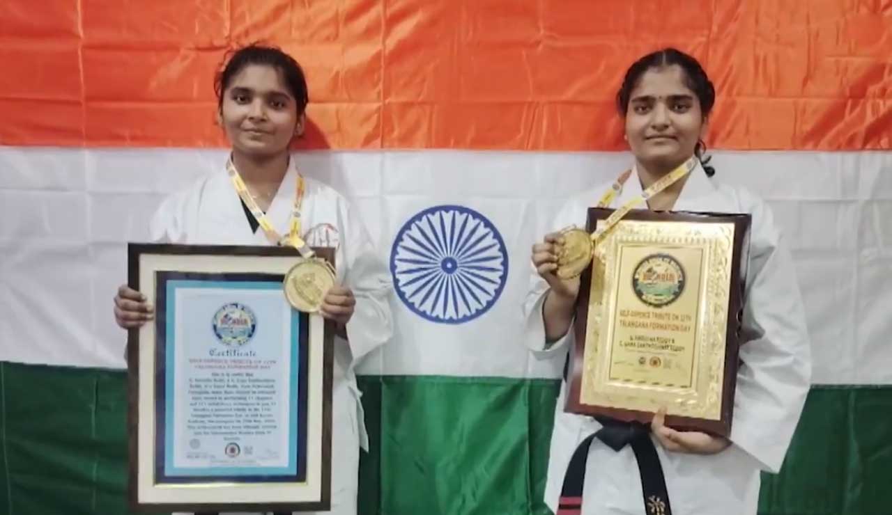 حیدرآباد: تلنگانہ کے یومِ تاسیس کے موقع پر دو بہنوں نے نیا عالمی ریکارڈ قائم کیا۔