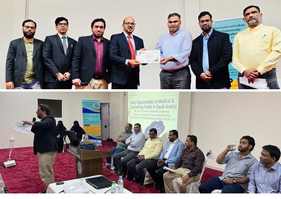 حیدرآباد (راست) انٹرنیشنل انڈین پروفیشنلز ایسوسی ایشن (IIPA) کے زیر اہتمام “سعودی عرب میں میڈیکل اور انجینئرنگ کے شعبوں میں اعلیٰ تعلیم کے مواقع” کے عنوان سے ایک بامقصد اور معلوماتی تقریب کا کامیاب انعقاد عمل مین آیا۔ اس علمی نشست میں ہندوستانی کمیونٹی کے 300 سے زائد طلباء، والدین اور تعلیمی ماہرین نے شرکت کی، جو اس پروگرام کی افادیت اور اہمیت کا منہ بولتا ثبوت تھا۔