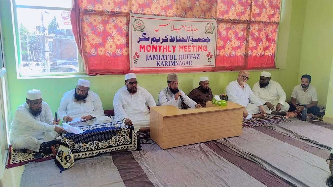 جمعیۃ الحفاظ کریم نگر کا ماہانہ اجلاس 31 مئی بروز ہفتہ صبح 10 بجے جمعیۃ الحفاظ کے دفتر پر حافظ احمدمنقبت شاه خان صدر قاضی و صدر جمعیۃ الحفاظ کی صدارت میں منعقد ہوا،ابتداء میں خطاب کرتے ہوئے ڈاکٹر عبدالقدوس صاحب دارالخیر سوسائٹی نے کہا کہ عیدالاضحی کے موقع پر عید ملاپ تقریب کے نام سے گاؤں دیہات میں پروگرام منعقد کئے جائیں اور برادران وطن کو مدعو کرکے ان سے خیر سگالی ملاقات کی جائے