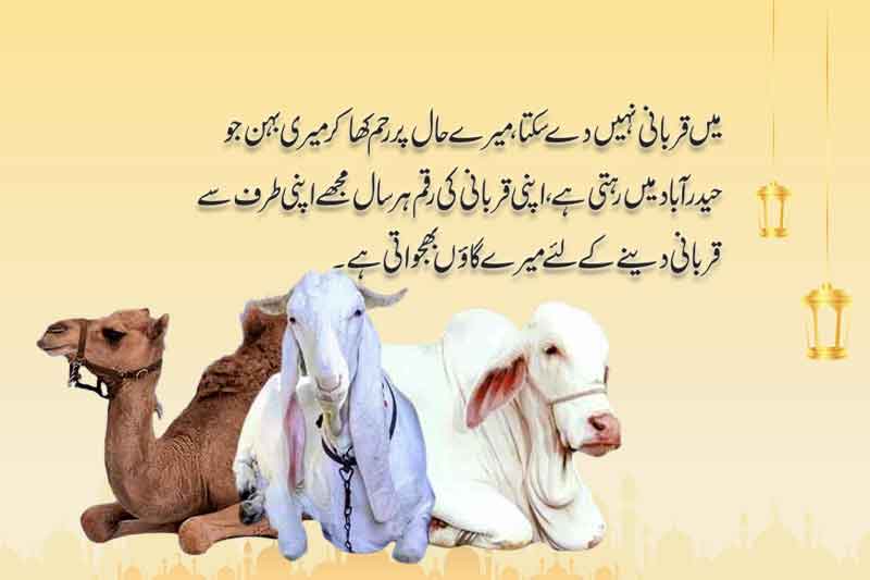 سوال:- میں کثیر العیال ہوں ، قربانی نہیں دے سکتا ، میرے حال پر رحم کھاکر میری بہن جو حیدر آباد میں رہتی ہے ، اپنی قربانی کی رقم ہر سال مجھے اپنی طرف سے قربانی دینے کے لئے میرے گاؤں بھجواتی ہے،