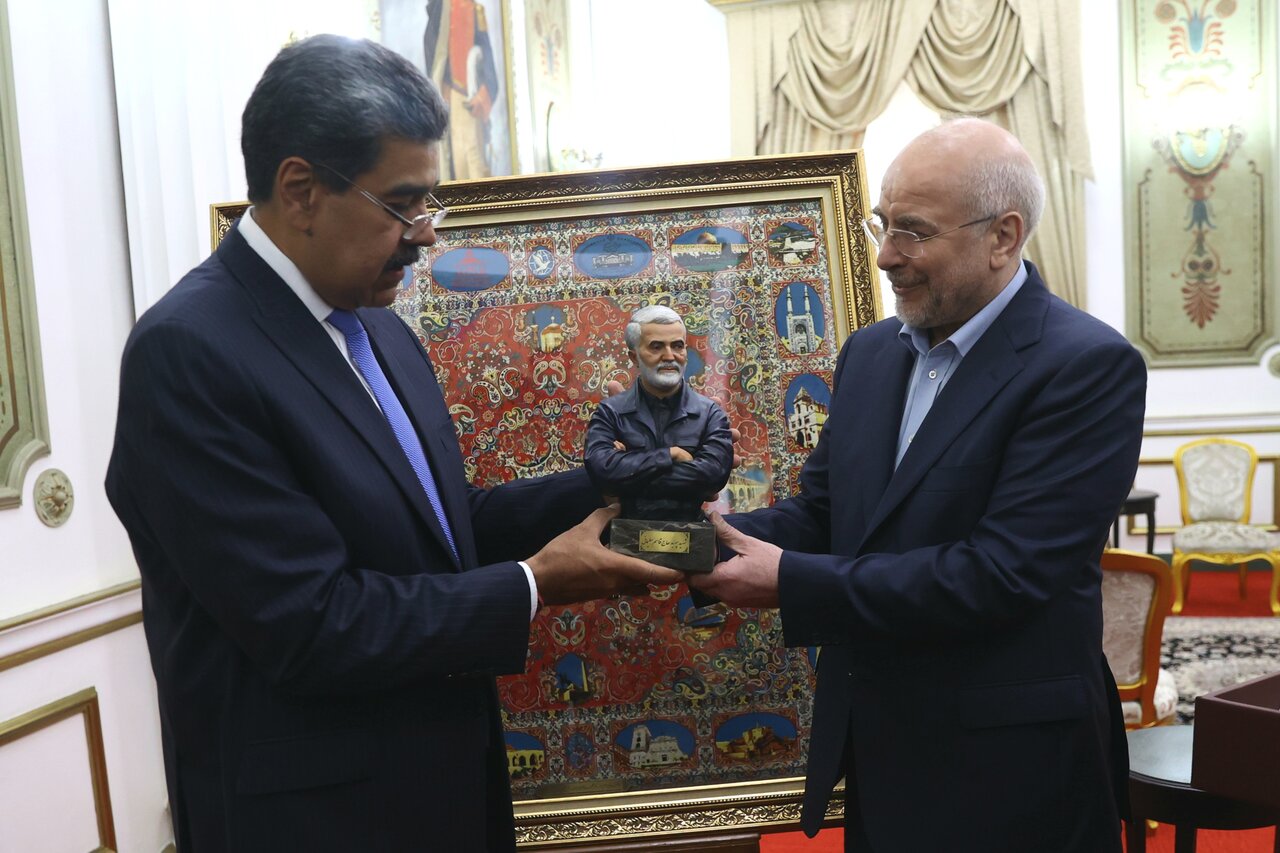 اس ملاقات کے دوران قالیباف نے شہید سلیمانی کا پورٹریٹ بھی پیش کیا جو حاج قاسم کے اہل خانہ نے مادورو کو بھیجا تھا۔