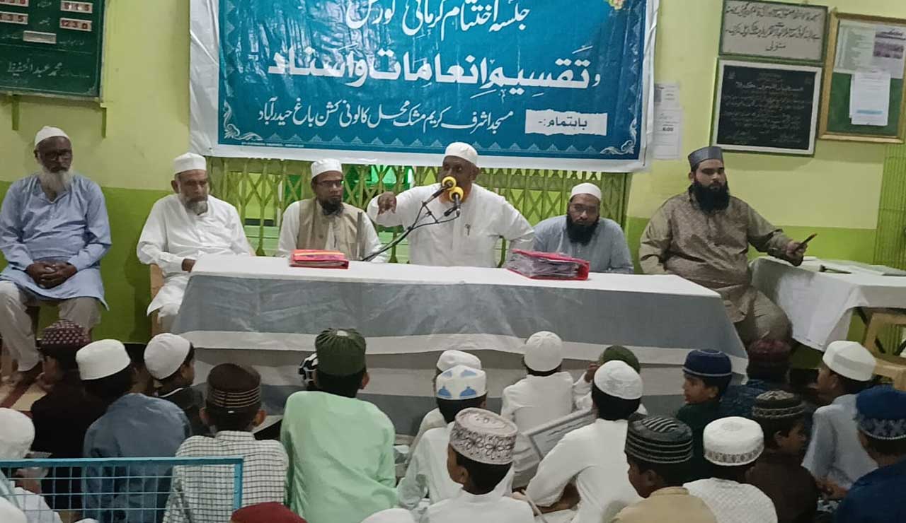 حیدرآباد: مدرسہ دینیہ اشرف کریم و خیاطی سنٹر، مسجد اشرف کریم، مشک محل کالونی، کشن باغ حیدرآباد میں سالانہ جلسۂ تقسیم اسناد کا انعقاد عمل میں آیا۔ اس موقع پر علم و فنون کی اہمیت، دینی و دنیاوی تعلیم کے فوائد اور خواتین کی خود کفالت پر زور دیا گیا۔