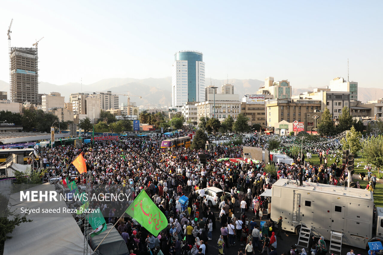مہر نیوز ایجنسی کے مطابق، تہران میں عید غدیر کے اجتماعات میں عوام کی شرکت غیر معمولی حد تک حماسی لگ رہی ہے۔