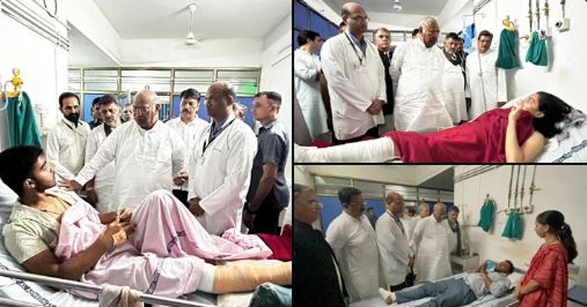 زخمیوں سے ملاقات کرتے ہوئے کانگریس صدر کھڑگے، تصویر @INCIndia