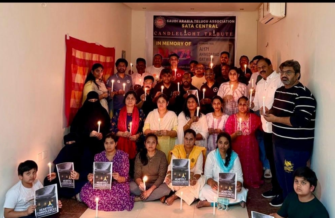 ریاض، 15 جون: ایئر انڈیا کی پرواز AI-171 کے المناک حادثے پر جہاں پورا ملک غم میں ہے، وہیں خلیجی ممالک میں مقیم بھارتی تارکین وطن نے بھی گہرے رنج و غم کا اظہار کیا ہے۔ ریاض میں مقیم تلگو این آر آئیز کی تنظیم “ساتا سنٹرل” کی جانب سے ہفتہ کے روز ایک شمع روشن کرنے کی تقریب منعقد کی گئی جس میں حادثے میں جاں بحق ہونے والے افراد کو خراج عقیدت پیش کیا گیا۔
