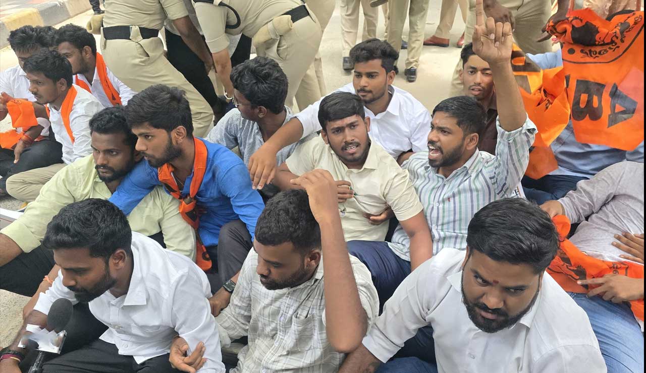 حیدرآباد: حیدرآباد کے آر ٹی سی کراس روڈ پر واقع بس بھون کے قریب اُس وقت کشیدہ صورتحال پیدا ہوگئی جب اَکھِل بھارتیہ وِدھیارتھی پریشد (اے بی وی پی ) کے کارکنوں اور طلبہ نے اچانک دھرنا دیا۔