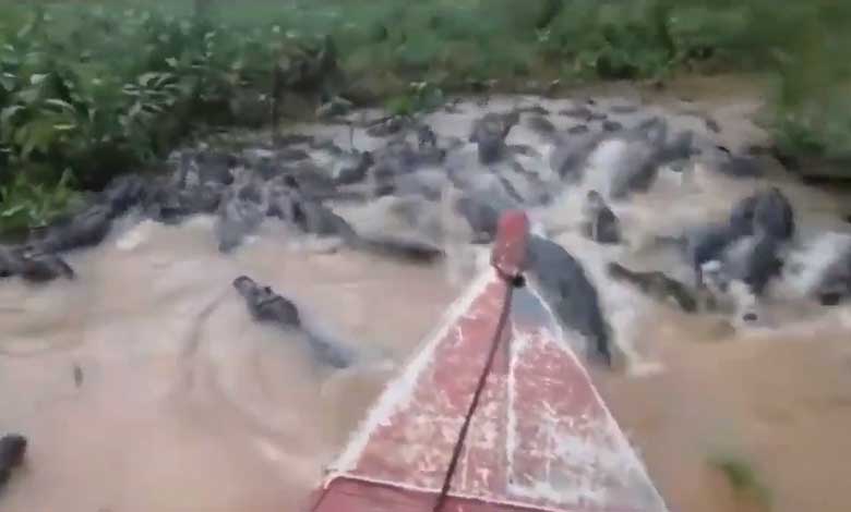 نئی دهلی: سوشل میڈیا پر وائرل ہونے والی ایک دل دہلا دینے والی ویڈیو نے لاکھوں لوگوں کو حیرت میں ڈال دیا ہے۔ اس ویڈیو میں ایک شخص کو دکھایا گیا ہے جو ایک پتلی سی لکڑی کی کشتی میں سوار ہو کر ایسی ندی میں اتر جاتا ہے جو مکمل طور پر مگرمچھوں سے بھری ہوئی ہے۔ ویڈیو میں نظر آنے والے مناظر اتنے سنسنی خیز ہیں کہ دیکھنے والوں کی روح تک کانپ گئی۔