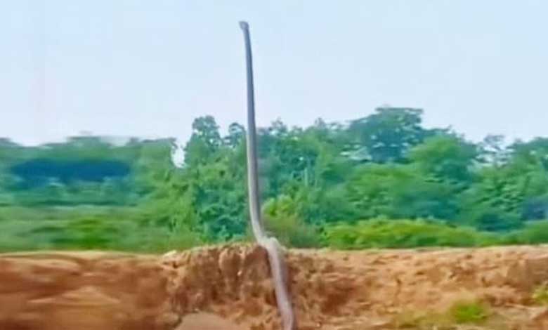 سوشل میڈیا پر ان دنوں ایک ایسا ویڈیو وائرل ہو رہا ہے جسے دیکھ کر انسان کا دل دہل جائے۔ صرف 10 سیکنڈ کے اس ویڈیو میں دنیا کا سب سے خطرناک سانپ کنگ کوبرا اپنے لمبے جسم کو زمین سے اوپر اٹھا کر پھن پھیلائے ہوئے نظر آرہا ہے، جیسے کوئی انسان غصے میں کھڑا ہو۔