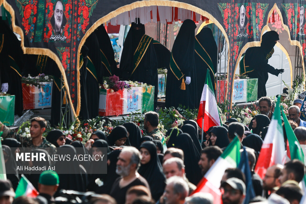 محرم الحرام کی دوسری تاریخ کو تہران میں باشکوہ اور تاریخی تشییع جنازہ جس میں انقلابی عوام نے صہیونی حکومت کے حملوں کا مقابلہ کرتے ہوئے جام شہادت نوش کرنے والے 60 سے زائد شہداء کی تشییع میں شرکت کی۔ شہداء میں فوجی کمانڈروں سے لے کر بچے اور خواتین تک شامل ہیں۔