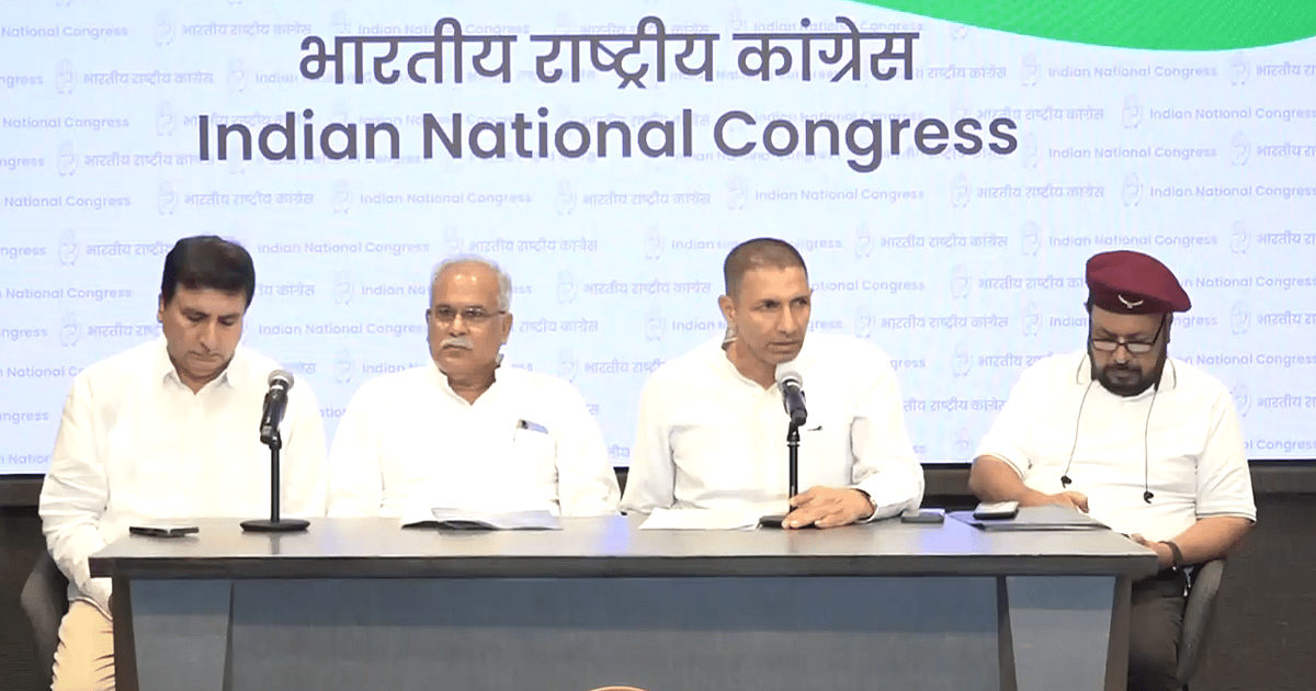 پریس کانفرنس کے دوران کانگریس لیڈران، ویڈیو گریب