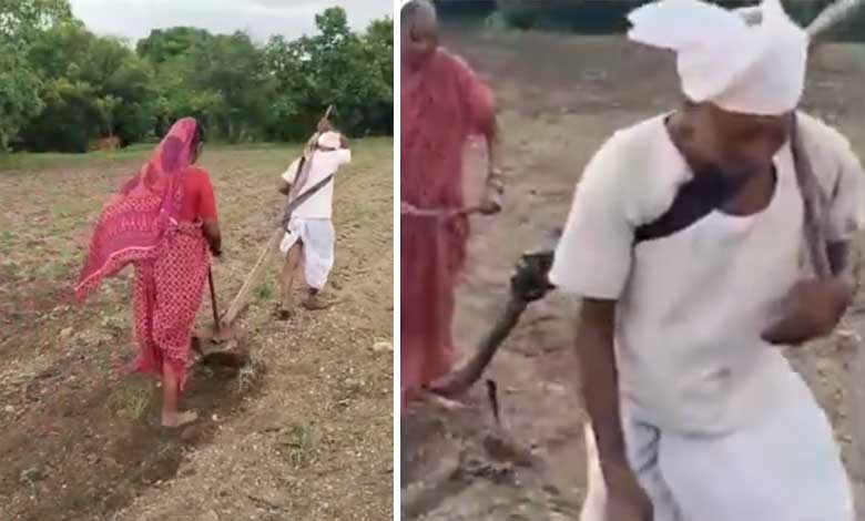 لاتور : مہاراشٹر کے ضلع لاتور سے ایک دل دہلا دینے والی ویڈیو نے سوشل میڈیا پر لوگوں کے دل کو جھنجھوڑ کر رکھ دیا ہے۔ یہ ویڈیو ایک 75 سالہ کسان اور اس کی بیوی کی جدوجہد کی جھلک پیش کرتا ہے، جو بیل یا ٹریکٹر نہ ہونے کے باعث خود کو ہل میں جوت کر کھیت میں کام کررہے ہیں۔