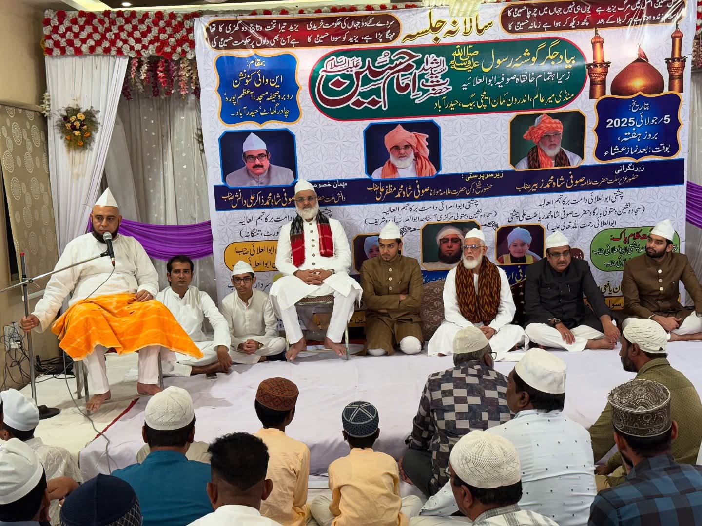جس کا مقصد سیرتِ حسینؓ کے پیغام کو عام کرنا اور نوجوان نسل کو حسینیؓ کردار اپنانے کی ترغیب دینا ہے۔انہوں نے اس موقع پر واقعہ کربلا کا تفصیلی ذکرکیا۔ جلسہ کی سرپرستیمولانا صوفی شاہ مظفر علی چشتی ابوالعلائی (سجادہ نشین ومتولی بارگاہ حضرت شیخ جی حالی ابوالعلائی ؒ) اور نگرانی مولانا صوفی شاہ محمدزبیرچشتی ابوالعلائی (سجادہ نشین ومتولی بارگاہ حضرت صوفی شاہ محمدریاضت علی چشتی ابوالعلائی ؒ) نے کی۔