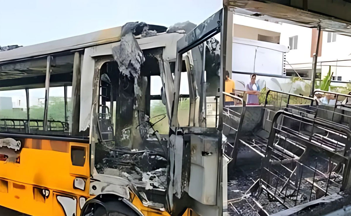 حیدرآباد: تلنگانہ کے سنگاریڈی ضلع کے امین پور بلدیہ حدود میں واقع کِستاریڈی پیٹ گاؤں میں جمعرات کی صبح دہلی پبلک اسکول کی بس میں اچانک آگ لگنے کا واقعہ پیش آیا۔