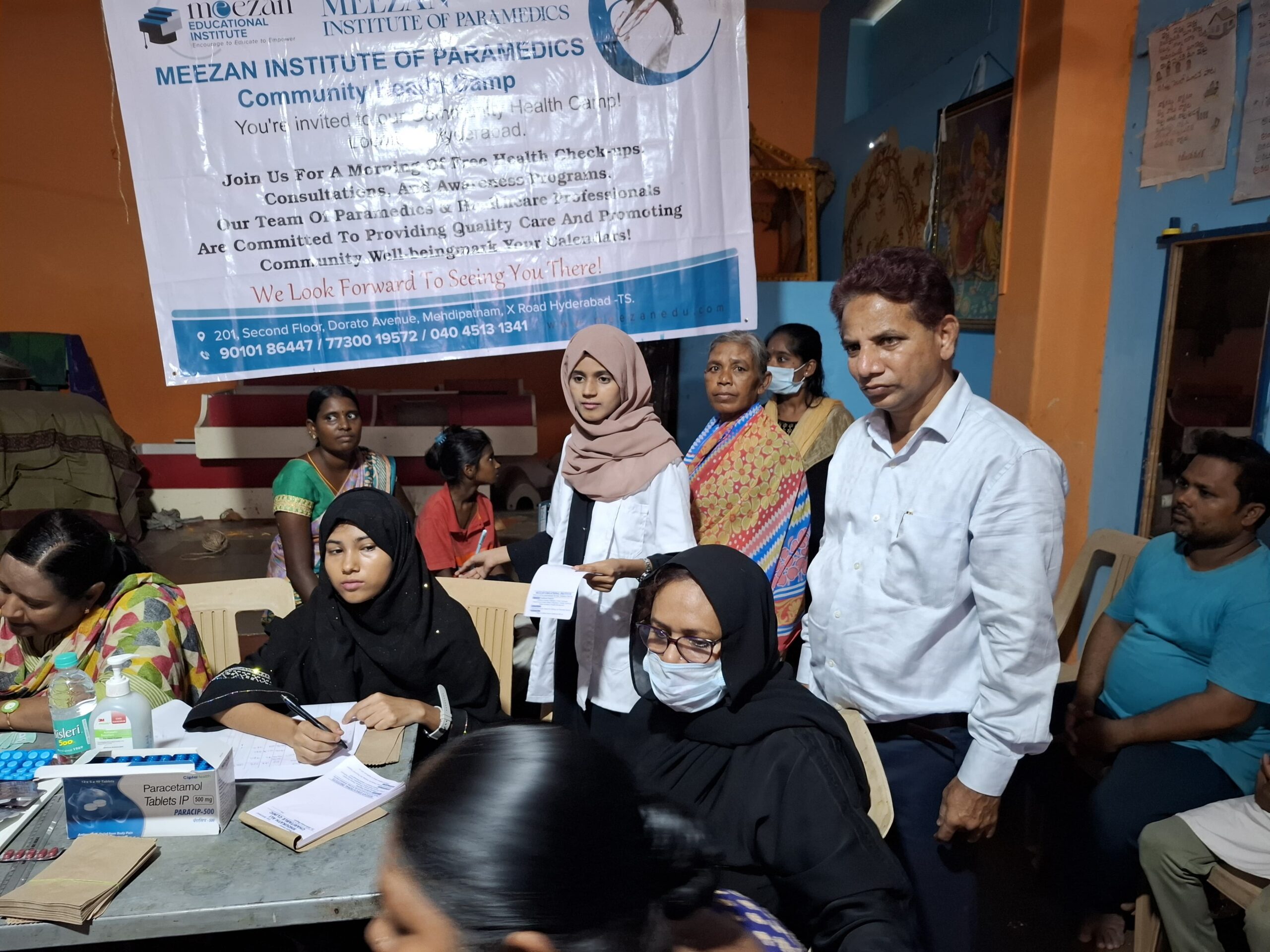 ۔اس موقع پرمریضوں کے مفت بلڈ شوگر (RBS) ٹیسٹ،نبض کی رفتار کا جائزہ،بلڈ پریشر کی جانچ اورآکسیجن سیچوریشن (SpO2) کی پیمائش وغیرہ کے ٹسٹ کئے گئے اور مفت ادویات پیراسیٹامول، آئرن کی گولیاں،وٹامن ڈی، بی کمپلیکس،مختلف ٹانیکس وغیرہ کی تقسیم عمل میں لائی گئی۔ میزان ایجوکیشنل سوسائٹی کے بانی مختاراحمد نے اس موقع پربتایا کہ اس کیمپ کا بنیادی مقصد معاشرے کے ان افراد تک طبی سہولیات پہنچانا تھا