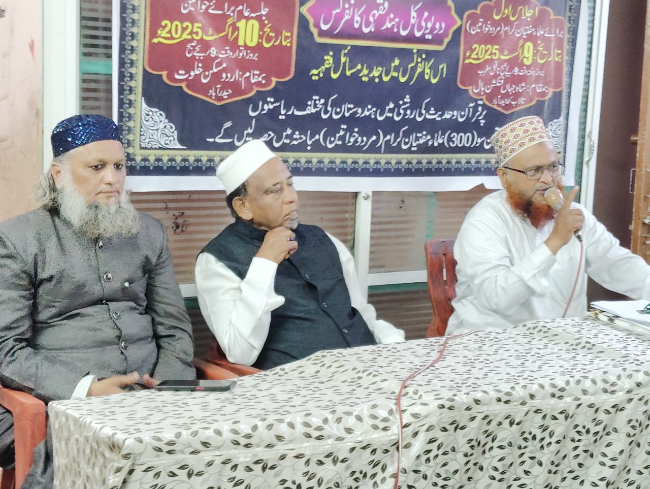 حیدرآباد 20جولائی (پریس ریلیز )پچیس سال قیام دار القضاء جامعتہ المؤمنات مغلپورہ حیدرآباد کے سلور جوبلی جشنِ تقاریب 9اور 10آگسٹ 2025کے ضمن میں 19جولائی کو 2025کواسلامی فقہ کے موضوع پر احاطہ جامعۃ المؤمنات مغلپورہ حیدرآباد میں خصوصی نشست منعقد ہوئی ۔ تقریب کی صدارت صدر استقبالیہ دو یومی فقہی کانفرنس حضرت سید شاہ نور الحق قادری ایڈوکیٹ نے کیا،اورڈائرکٹرکانفریس مولانا مفتی ڈاکٹر حافظ محمد مستان علی قادری بانی وناظم اعلی جامعتہ المؤمنات مغلپورہ حیدرآباد نے نگرانی کیا خطیب وامام مسجد تلنگانہ اسٹیٹ حج ہاؤز نامپلی حیدرآباد مولانا مفتی ڈاکٹر حافظ محمد صابر پاشاہ قادری نے انتظامات کی نگرانی کی جسمیں ، مختلف طبقہ ہائے فکر کی معزز شخصیات اور علماء و مشائخ موجود تھیں۔کلیتہ البین جامعۃ المؤمنات کے اساتذہ کرام کے ساتھ کلیتہ البین جامعۃ المؤمنات کے اسکالر تخصص فی الفقہ کے طلبہ بھی اس نشست میں شریک تھے۔اس نشست میں اسلامی فقہ کے حوالے سے گفتگو کرتے ہوئے بتلایا گیا کہ دنیا کی ہر قوم اورہر مذہب میں باہمی اختلافات سے نمٹنے اور مسائل کو حل کر نے کے لیے کسی نہ کسی شکل میں قانون موجود رہاہے؛چنانچہ شریعتِ محمدی میں بھی ہر قسم کے اختلافات سے نمٹنے کے لیے ایک مضبوط اورپائیدار قانون موجودہے ،جس سے انسان آسانی سے اپنے تنازعات کو حل کر سکتاہے۔اس کام کوجو انجام دے اسے دارالقضاء کا امیر شریعت کہتے ہیں اور وہ جگہ جہاں باہمی تنازعات میں اللہ تعالیٰ کے اتارے ہوئے قانون کے مطابق فیصلہ دیا جائے اسے دارالقضاء یا شرعی کونسلنگ سنٹر کہتے ہیں