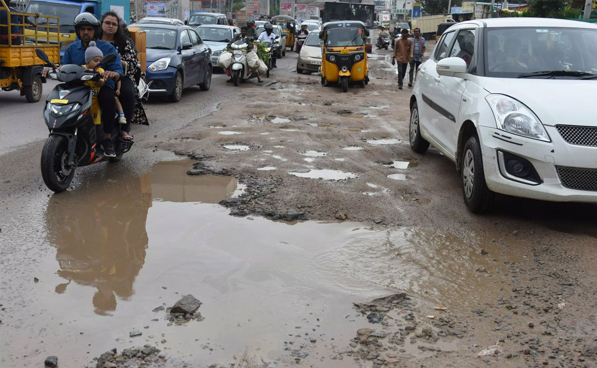 حیدرآباد: شہر حیدرآباد میں شدید بارش کے سبب کوکٹ پلی کے بھارت نگر سبزی منڈی سے سمتانگر، جنکل واڑہ، فتح نگر اور بالا نگر جانے والی اہم شاہراہ خستہ حالی کا شکار ہو گئی ہے۔