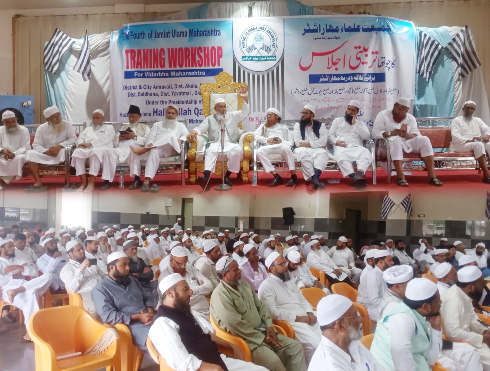 ممبئی 28؍جولائی جمعیۃ علماء مہاراشٹر کا چوتھا تربیتی اجلاس شہرامراوتی کے عبداللہ پیلس ہال میں بتاریخ 26 ؍جولائی زیر صدارت مولانا حلیم اللہ صاحب قاسمی (صدر جمعیۃ علماء مہاراشٹر) منعقد ہوا،اس اجلاس میںجمعیۃعلماء مہاراشٹر کے عہدیداران اور علاقہ ودربھ کے اضلاع کی مجلس منتظمہ کے تقریباً دو سو نمائندوں نے شرکت کی،جمعیۃ علماء امراوتی کے فعال کارکنوں نے مہمانوں کے استقبال و ضیافت کا عمدہ نظم کیا تھا۔